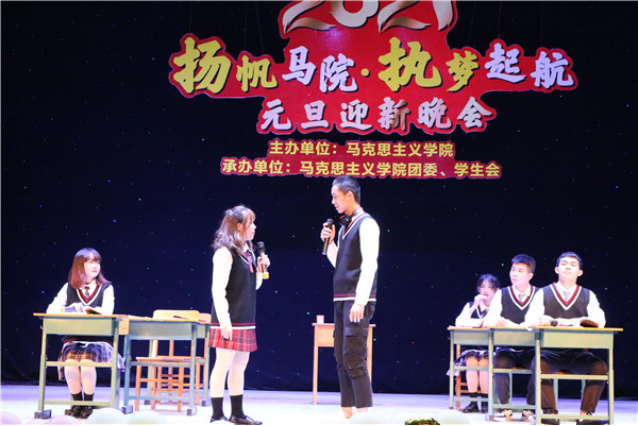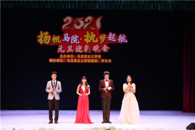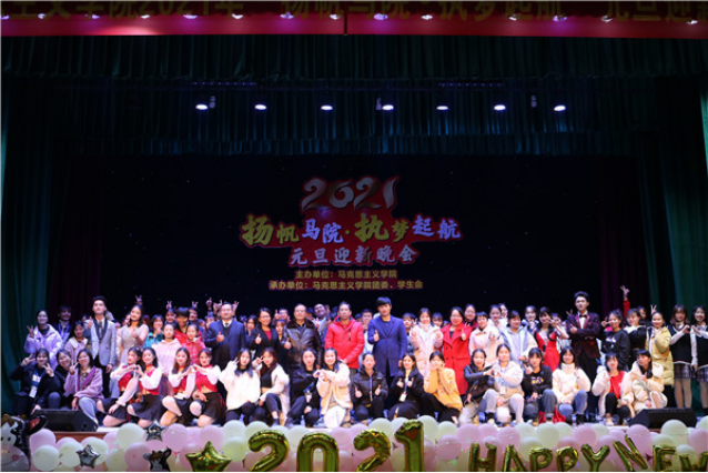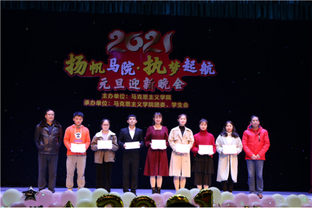 牛奔马跃行千里,凤舞龙飞上九霄。12月12日晚,必赢国际bwin于东区礼堂举办以“扬帆马院,执梦起航”为主题的2020年度表彰大会暨2021年元旦迎新晚会。必赢国际bwin党总支部书记韦建益、执行院长江洪明、党总支部副书记江日青、代理团委书记易万臣、辅导员唐菊花等老师出席,与必赢国际bwin学子欢聚一堂,共赏晚会。晚会由黄瑞添、莫惠婷、陆创宇、黄美值主持。