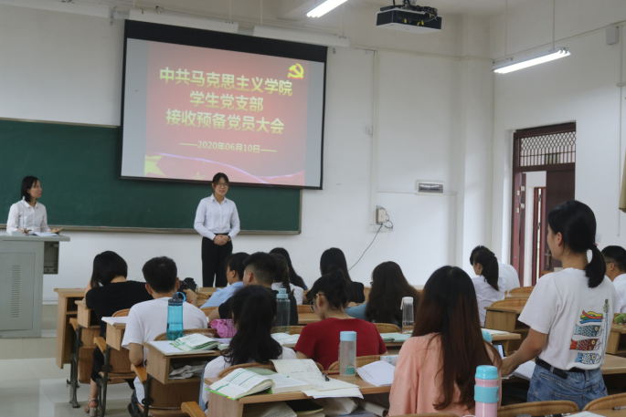 6月10日下午,必赢国际bwin学生党支部于弘毅楼3-301教室召开预备党员接收大会。本次大会对16名发展对象能否接收为预备党员进行讨论和表决,学生党支部书记黄艺生主持会议,该支部党员及入党积极分子参加会议。