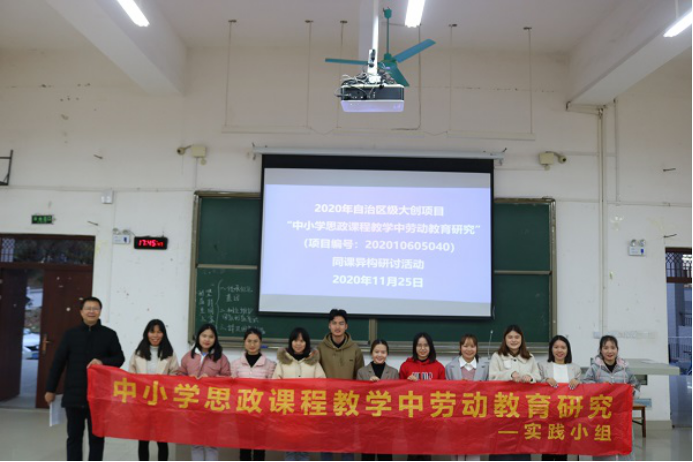 为进一步提高必赢国际bwin师范生任教能力,促进师范生专业化成长。2020年11月25日下午,必赢国际bwin“中小学思政课程教学中劳动教育研究”大创项目组和“桂西北红色文化资源在中学思政课堂中运用研究”大创项目组,在弘毅楼1-105教室举行“同课异构”研讨活动。2019级、2020级思想政治教育专业师范生到场参加本次活动。