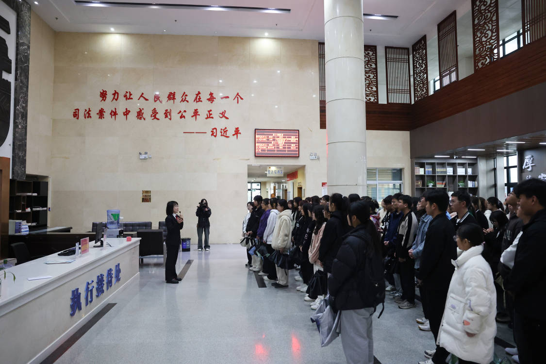 集中宣判会后,河池市宜州区人民法院的工作人员带领参加集中宣判会的师生参观了诉讼服务大厅,向师生们介绍了法院机构设置、立案流程、诉讼收费标准等。同时,法院工作人员还向师生们介绍了禁毒及预防网络诈骗的知识。