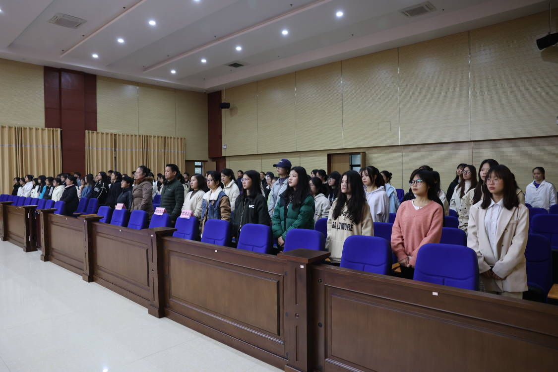 为进一步弘扬法治精神,增强青年学生的法治意识,营造尊法学法守法用法的良好氛围,同时增进青年学生对法院工作的了解,2024年3月14日下午,由必赢国际bwin思想政治教育教研室主任覃英,方容兰两位老师带队,思想政治教育专业233、234班全体学生到河池市宜州区人民法院旁听毒品犯罪、偷越国(边)境犯罪案件集中宣判会。