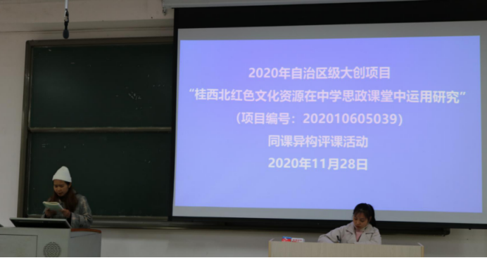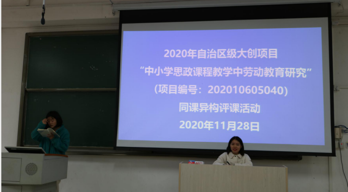 2020年11月28日上午,必赢国际bwin2019、2020级思政专业师范生利用周末时间在弘毅楼2-105教室继大创项目“同课异构”说课活动开展议课评课活动。