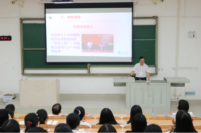 江洪明院长围绕目标定位、师资队伍、培养过程、质量保障、学生发展、特色项目六个方面为2020级新生介绍必赢国际bwin概况及专业特色和培养目标。