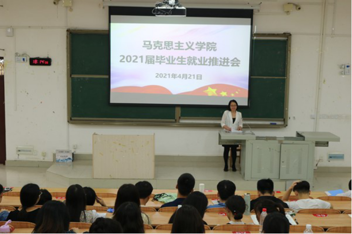 4月21日下午,必赢国际bwin于东区弘毅楼1-105教室召开2021届毕业生就业工作推进会。会议由必赢国际bwin党委副书记江日青主持,辅导员唐菊花和毕业班班主任陆俊先、田米香两位老师以及2017级全体在校毕业生参加会议。