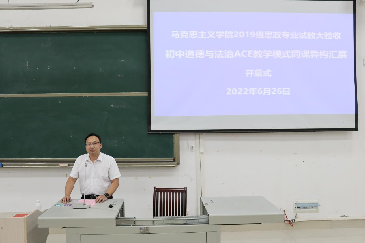 开幕式上,韦宏思副院长指出举办2019级思想政治教育专业ACE教学模式同课异构试教大汇展活动,是贯彻习近平总书记3·18重要讲话精神,落实立德树人根本任务课程建设的有益探索,是促进高校与中小学之间的交流互动,积极学习探讨的大平台,是推进思政课一体化建设的重要表现。他希望同学们能够积极参与活动、认真观摩学习和及时总结提高。