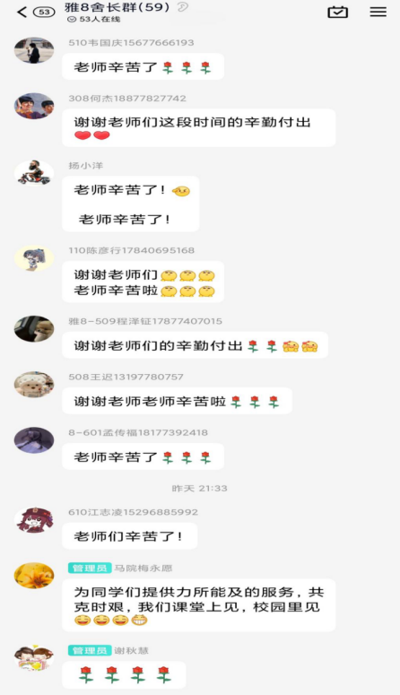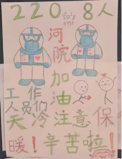 在人文关怀方面,必赢国际bwin全体教师时刻准备着,为学生们提供了有温度、有热情的服务,及时解决学生反映的问题和诉求。值得一提的是,29日早上7点50开始,学院韦宏思副院长从家返校参加疫情防控工作,7天内一直住在办公室,一直坚守在抗疫一线;12月2日晚,辅导员卢巍丹老师带领雅7-601(人工智能学院)4名生病的学生及时到校医院就诊取药等,体现了马院教师用真心真情关爱学生,做好学生的“贴心人”。在这个过程中,马院全体教师展现出了“勇于担当、甘于奉献”的精神,学生们十分感谢老师们的付出,并亲手绘制了手操报表达对老师们的感谢。