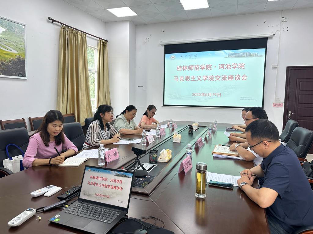 5月19日,桂林师范学院必赢国际bwin谢华一行4人到必赢国际bwin开展交流座谈会。副院长韦宏思、思政教研室主任覃英、副主任姚力月、原理教研室主任叶世斌、办公室主任韦沥雅参加会议。